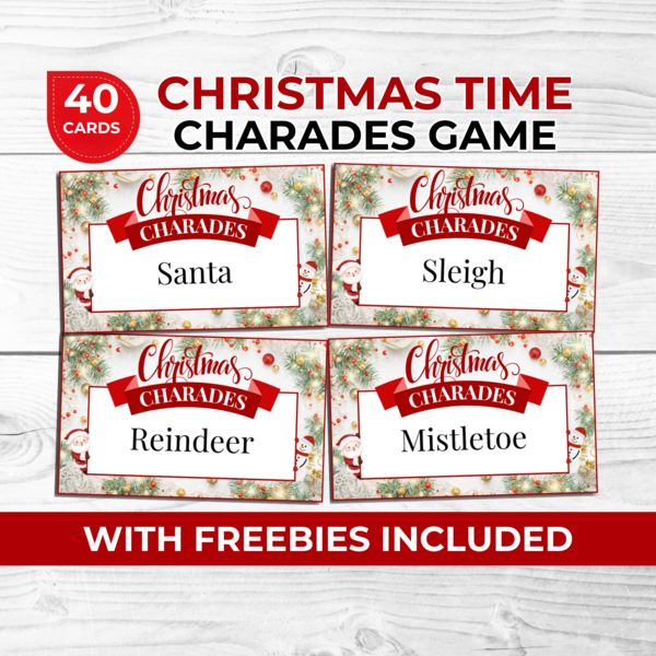 Funny Christmas Charades Game for Adults – Printable Holiday Party Activity for Office Parties, Friends & Family with FREE Finish the Lyrics Game + Photo Booth Props