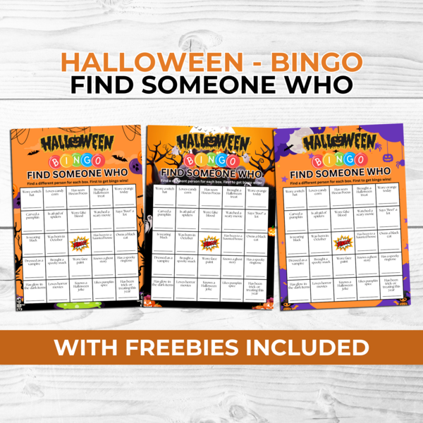 Halloween Bingo Game Find Someone Who – Fun Party Activity for Kids, Teens & Adults with Free Charades Cards + Photo Booth Props