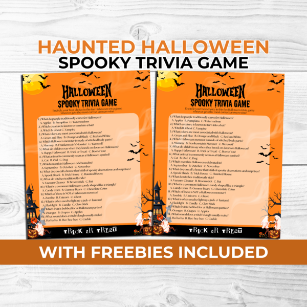 Halloween Trivia Game Printable – Family-Friendly Spooky Quiz for Kids, Parties & School + Bonus Left Right Story & Photo Booth Props