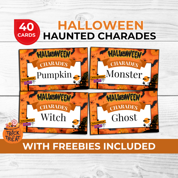 Halloween Charades Game Printable | Fun Party Game for Kids, Families, School & Classroom Events + Free Mad Libs & Photo Booth Props