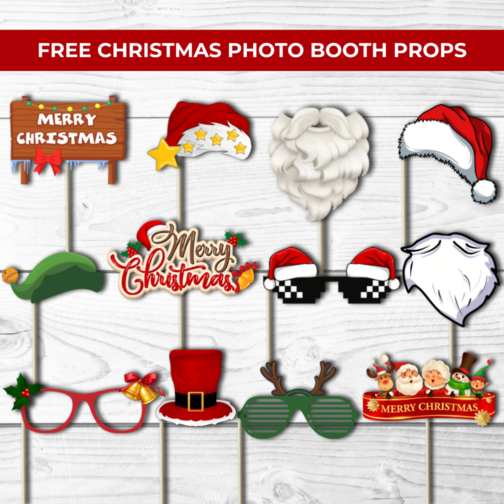 1 pdf (US Letter Size) Free Christmas Themed Photo Booth Props