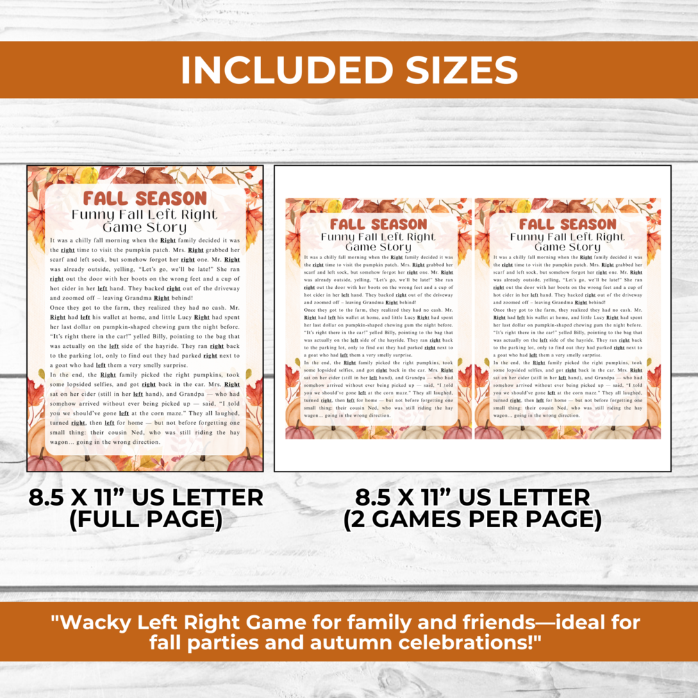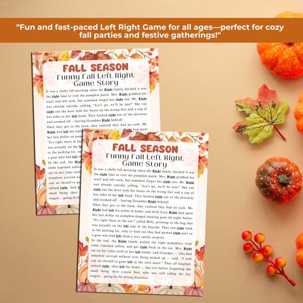Bring laughter and excitement to your fall celebrations with this Unique Fall Left Right Game! Perfect for cozy family gatherings, kids’ parties, classrooms, Thanksgiving dinners, and autumn get-togethers, this interactive game is guaranteed to keep everyone entertained.