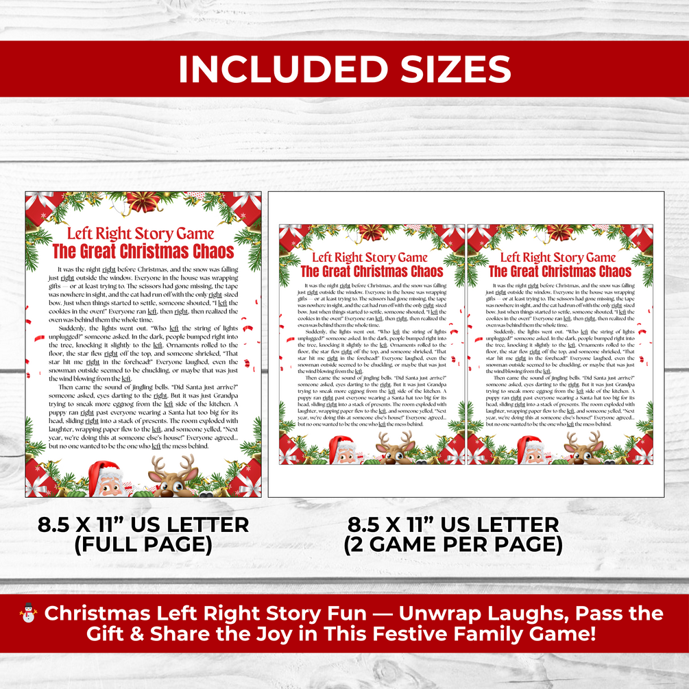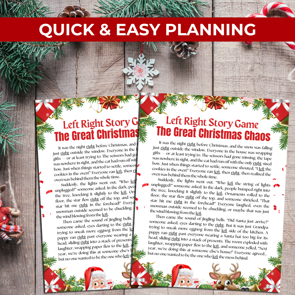 Christmas Left Right Game Printable – Fun Holiday Story Game for Families, Adults & Kids with Free Candy Dice Game and Photo Booth Props