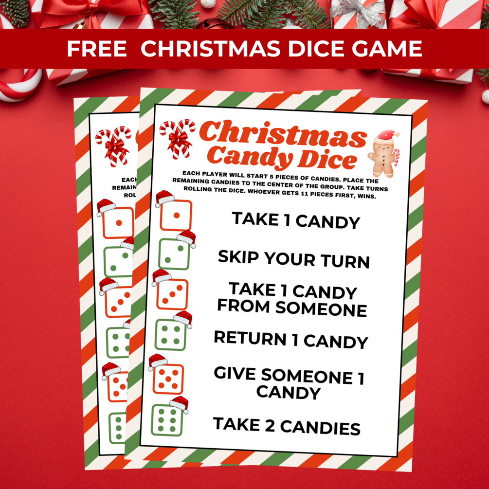 1 pdf (US Letter Size) Free Christmas Candy Dice Game (Full Page)