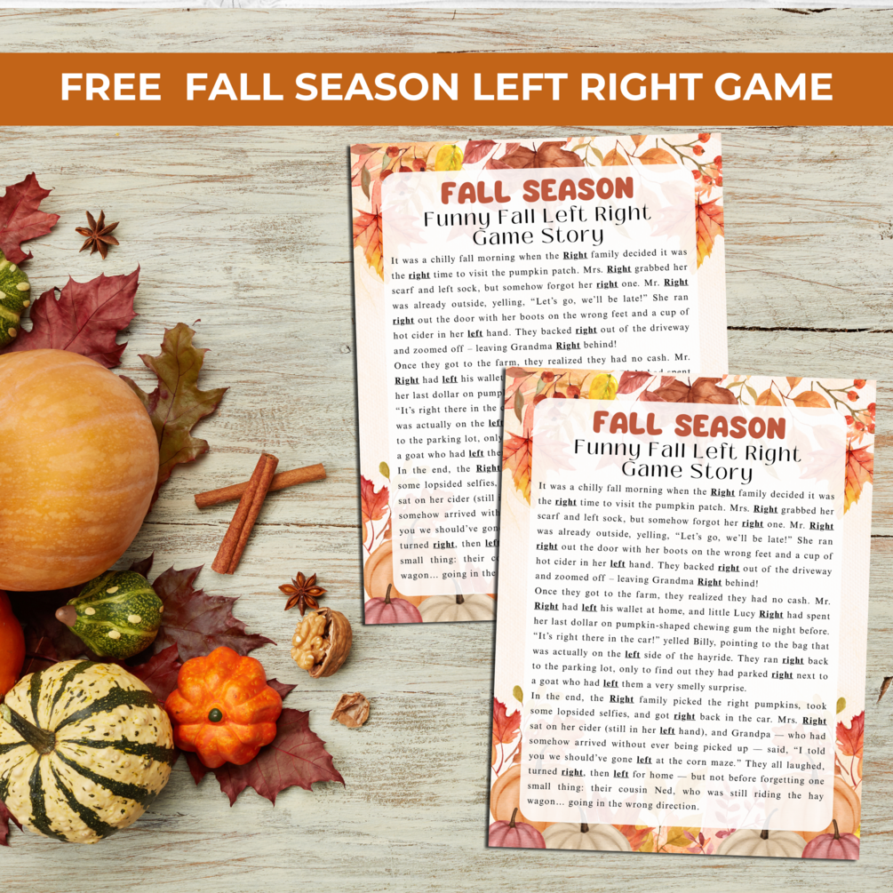 Bring laughter to your autumn celebrations with this Funny Fall Mad Libs Story Game! Perfect for family game nights, classroom fun, autumn parties, and Thanksgiving gatherings, this printable fill-in-the-blank activity will have kids and adults cracking up as they create silly seasonal stories. Plus, you’ll get a bonus Fall Left Right Story Game and printable photo booth props to keep the fun going all season long!
