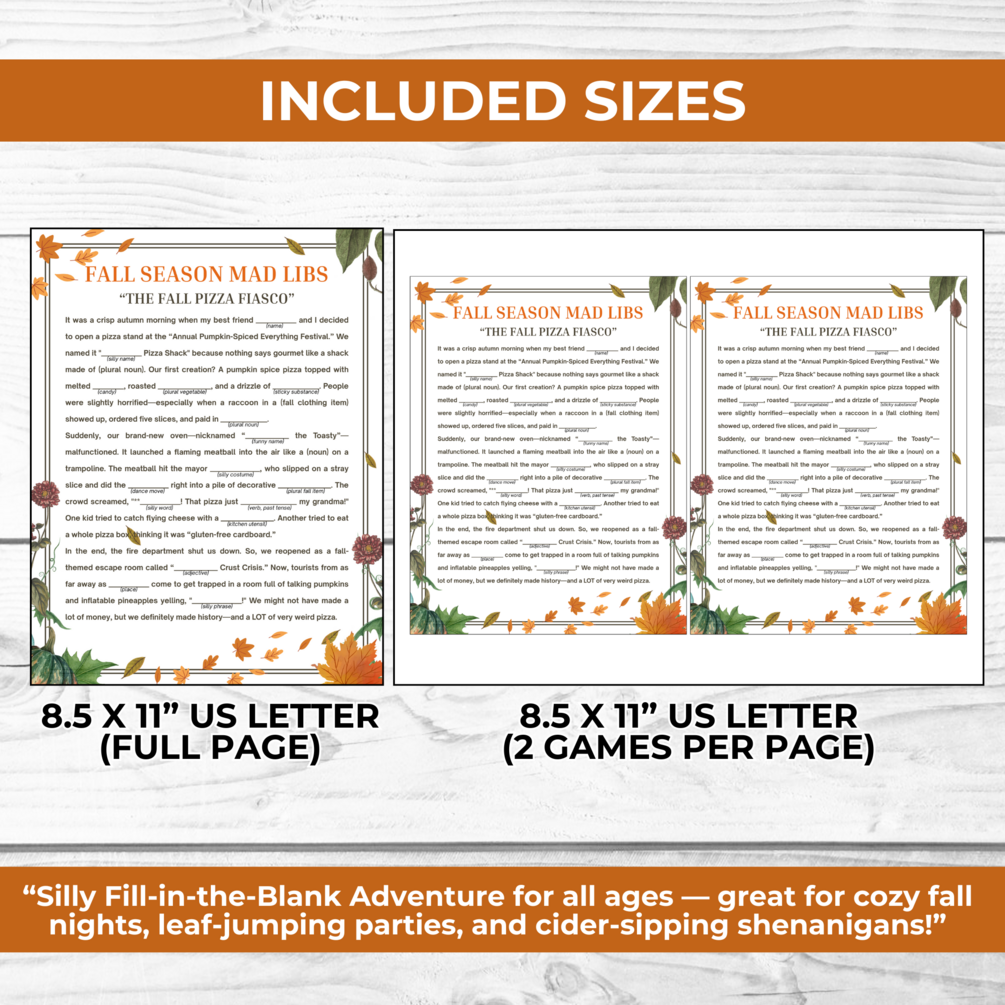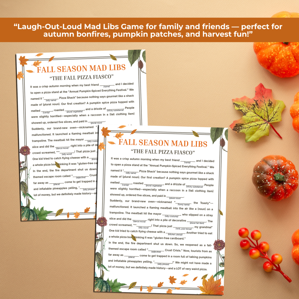 1.)Fall Mad Libs Story Game (2 Sizes)