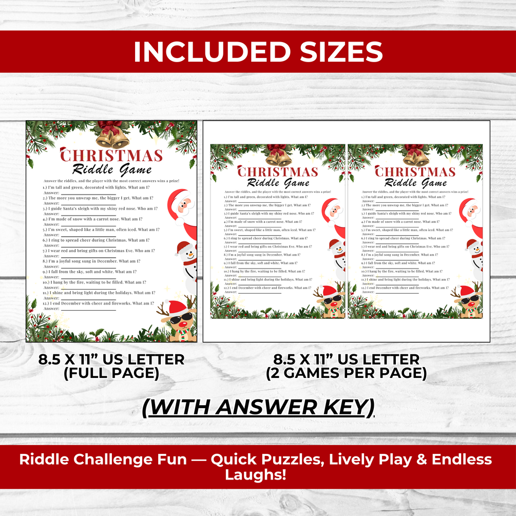 Bring laughter and excitement to your holiday gathering with our Festive Christmas Riddles Game Printable! Perfect for kids, teens, and adults, this game adds a playful twist to your Christmas party with clever riddles that everyone will enjoy solving.