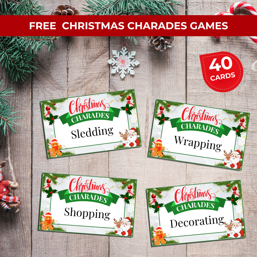 1 pdf (US Letter Size) Free Christmas Charades Games (40 Cards)