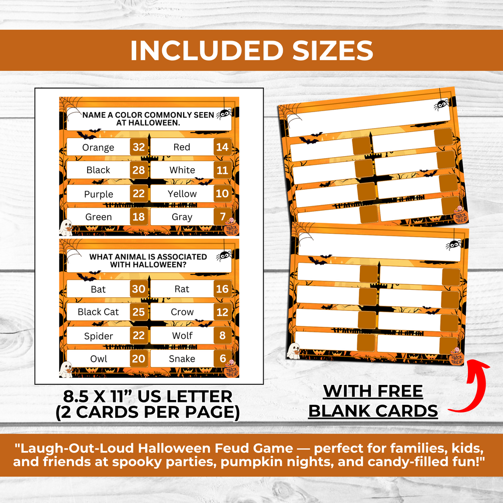 1 pdf (US Letter Size) Halloween Friendly Feud Game (Blank Cards)