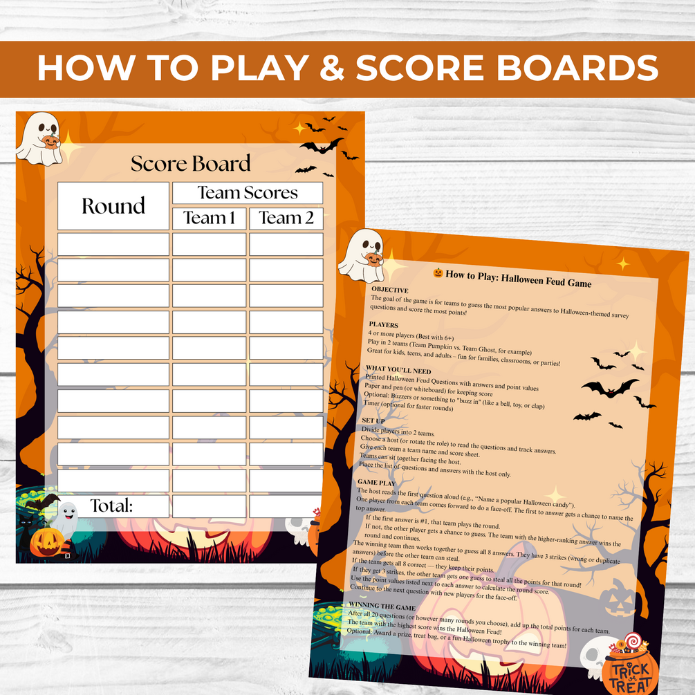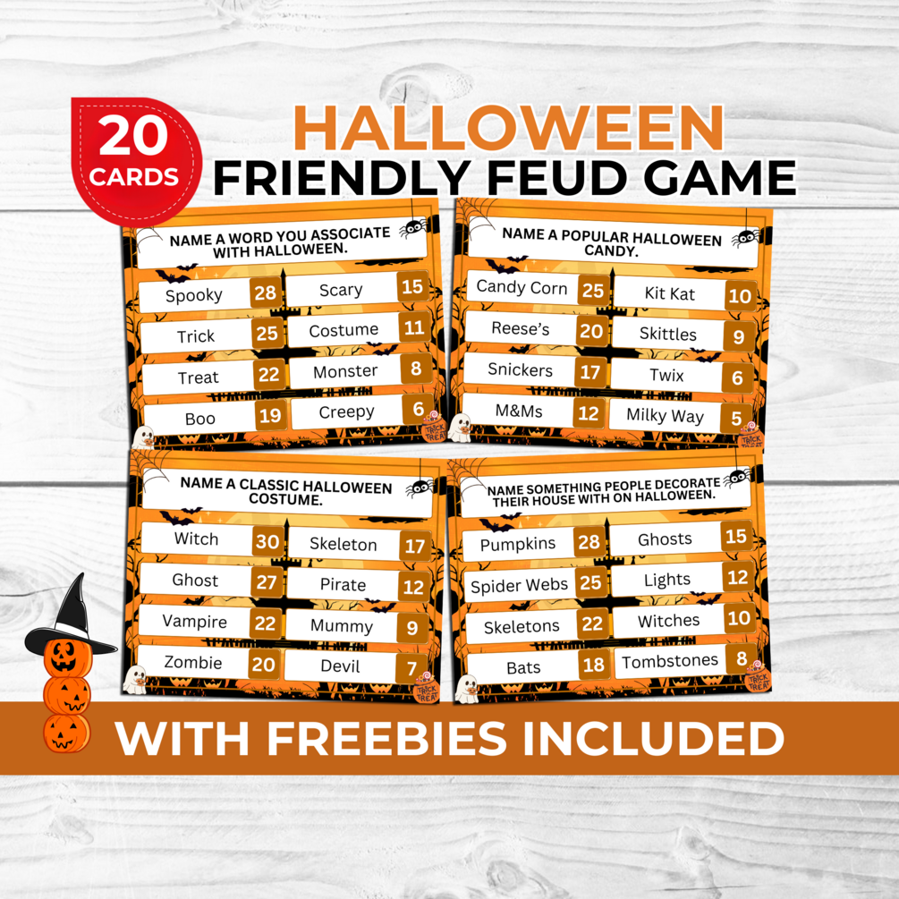 1.)Halloween Friendly Feud Game (20 Cards)