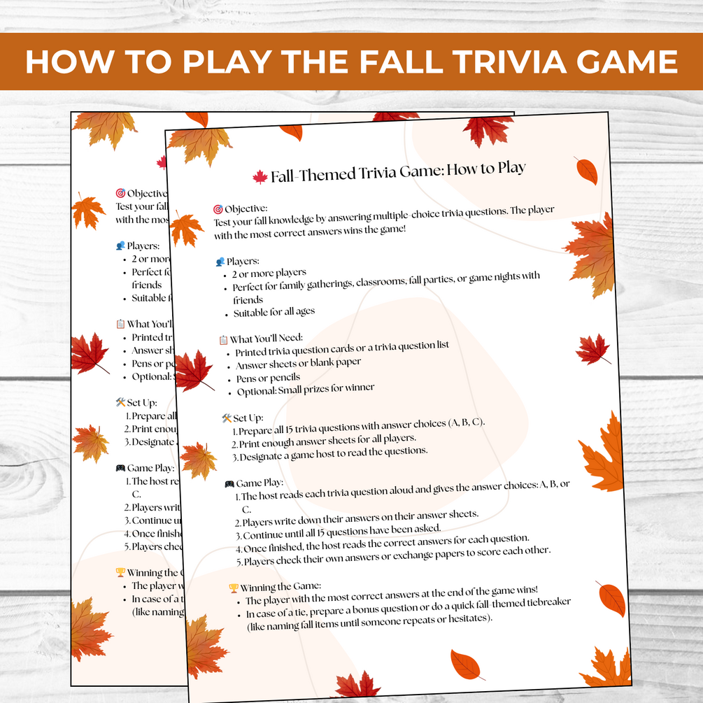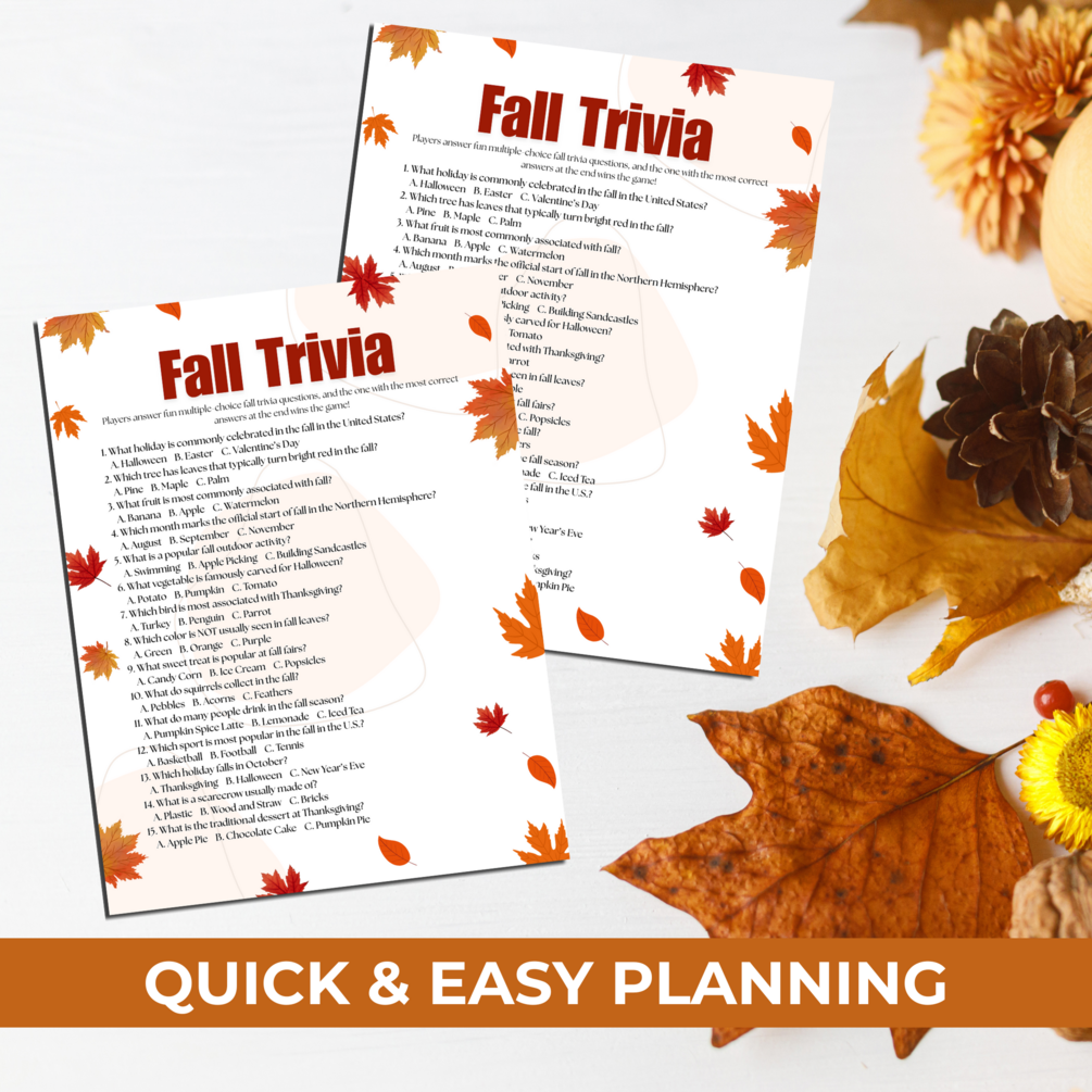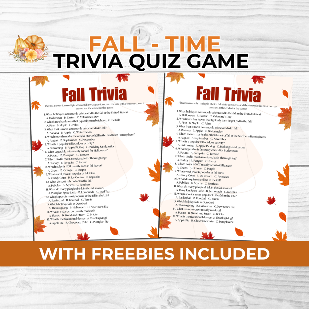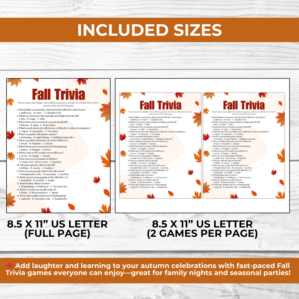 1 pdf (US Letter Size) Printable Fall Trivia Game (Full Page)