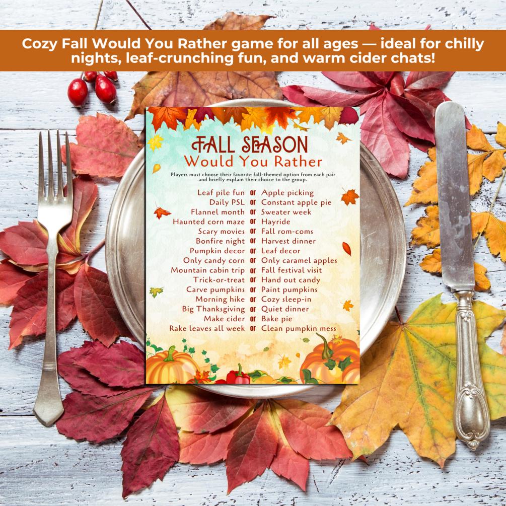 1 pdf (US Letter Size) Fall Would You Rather Game(Full Page)