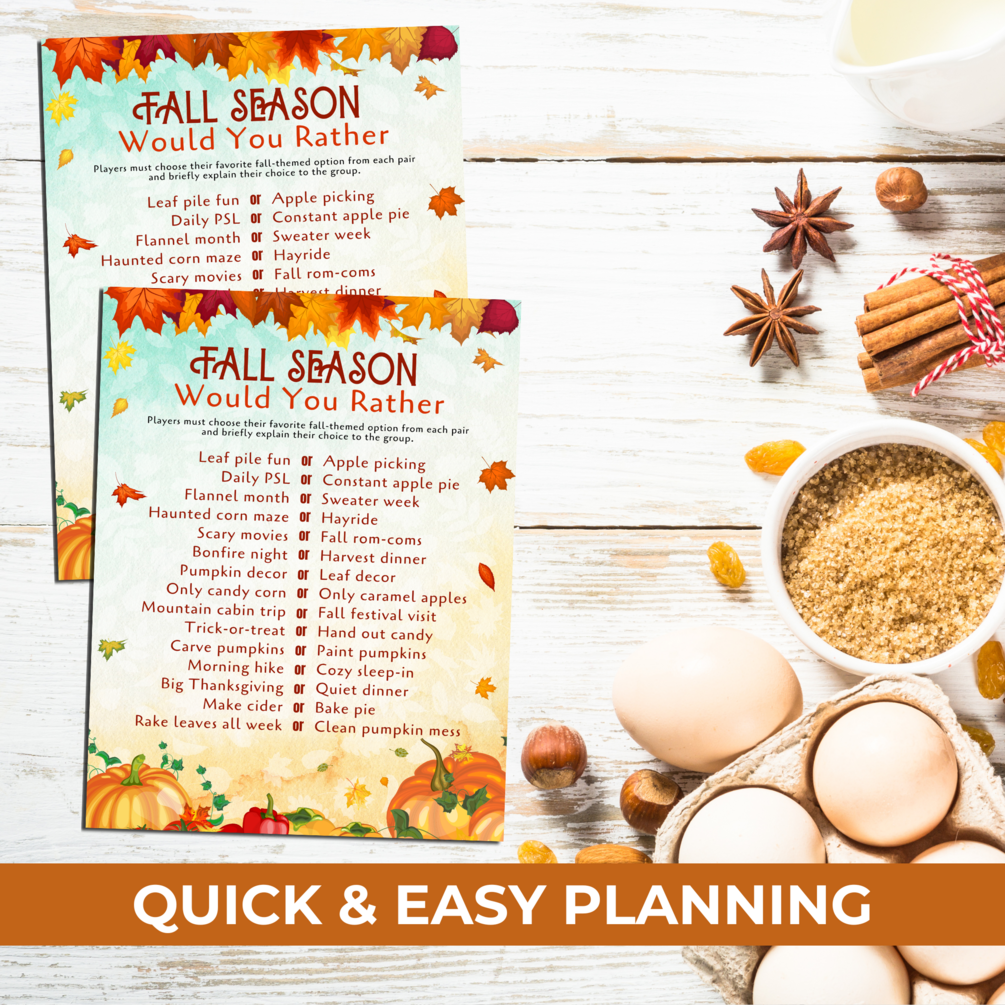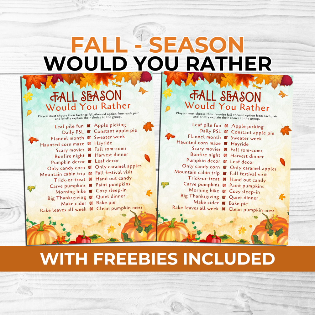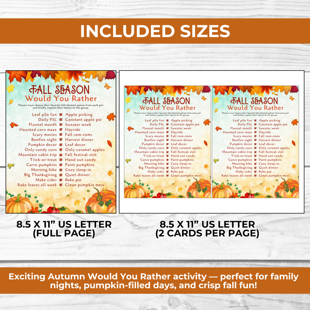 1 pdf (US Letter Size) Fall Would You Rather Game(2 Cards Per Page)