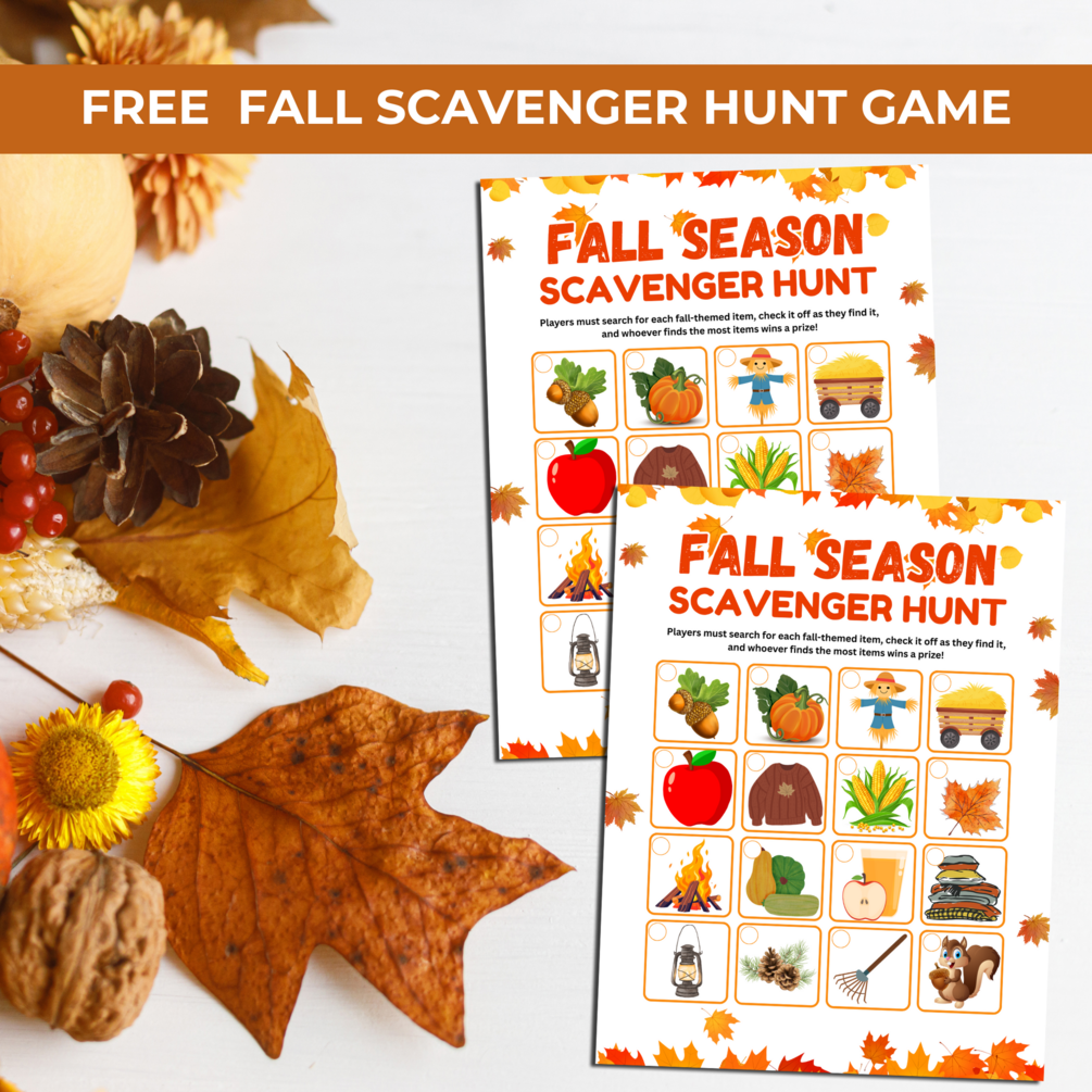1 pdf (US Letter Size) Free Fall Scavenger Hunt Game