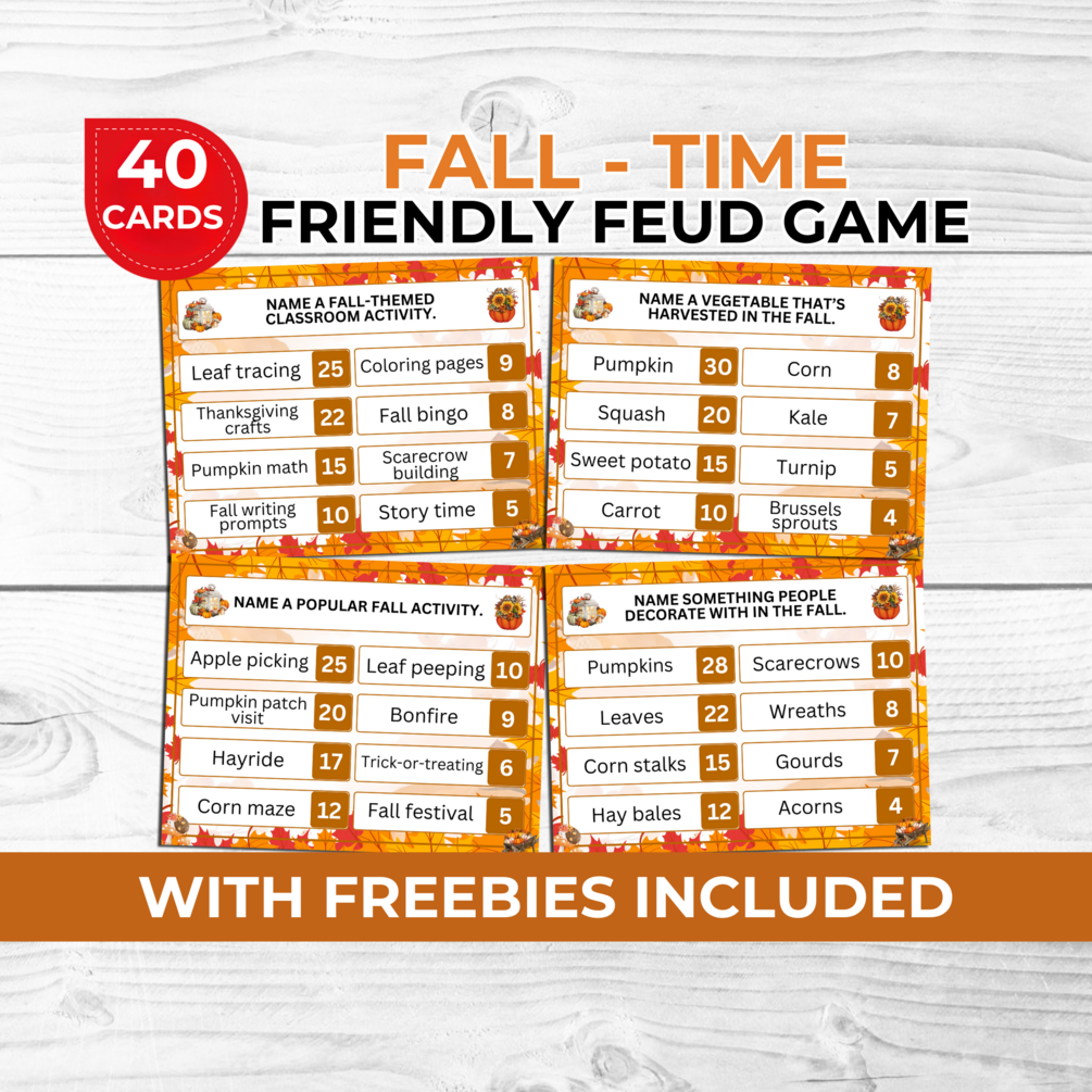 1 pdf (US Letter Size) Fall Feud Game Printable (2 Cards Per US Letter)