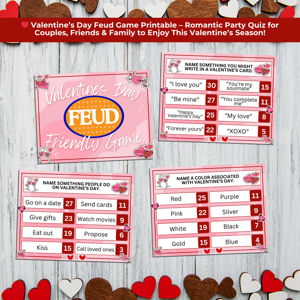 Celebrate Valentine’s Day with smiles, laughter, and friendly competition using our Valentine’s Day Friendly Feud Game Printable — a love-themed party game designed for couples, friends, and families of all ages. Inspired by the classic feud-style game show, this Valentine edition creates fun, connection, and unforgettable moments at any gathering.