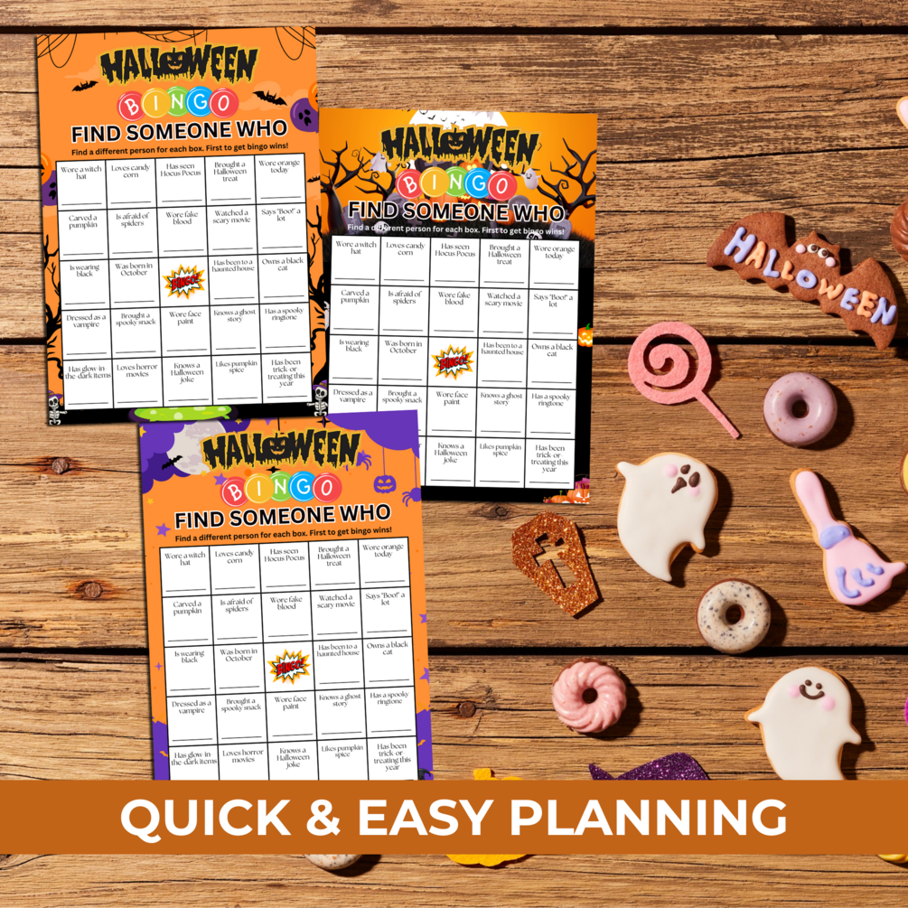 This game is ideal for teachers, parents, party hosts, event planners, and Halloween enthusiasts looking to add fun and connection to their events. It’s also great for shy guests, encouraging them to mingle in a light-hearted way. Plus, the bonus Halloween charades and photo booth props add extra layers of laughter and unforgettable memories.