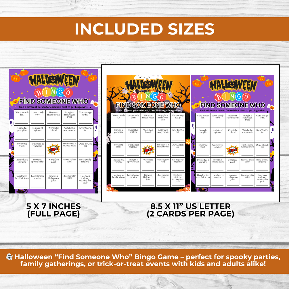 1.)Halloween Bingo Game Find Someone Who(4 Designs / 2 Sizes)