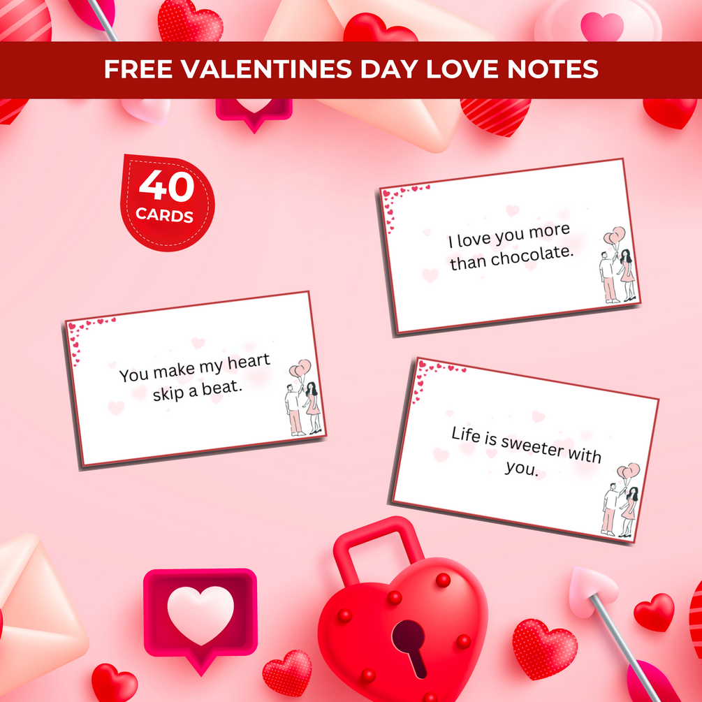 4.)Free Valentine’s Day Love Note Cards (40 Notes with Blank Cards)